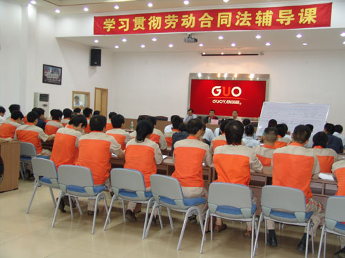 5月9日下午,广州市国砚实业发展有限公司、广州市milan体育设备制造有限公司在总部大会议厅举行了声势浩大的学习《劳动合同法》活动。该活动由公司党支部书记、副总经理王声跃主持,广东注明律师事务所——广东德法理律师事务所、我司常年法律顾问黄文芳主任律师担任主讲。