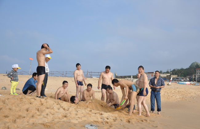 虽然到了深秋,海风习习,海水也有一丝丝凉意,参与活动的milan体育总部50多名员工纷纷下海畅游,好不惬意。不少参与活动的员工家属也按捺不住活动开来。大家边游泳,边踏浪,也有的在沙滩上捡贝壳,孩子们拿着铲子挖沙,一个个玩得不亦乐乎。