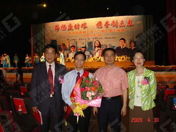 刘启刚(左二)出席天河区”五一“劳模文艺晚会并和区领导合影