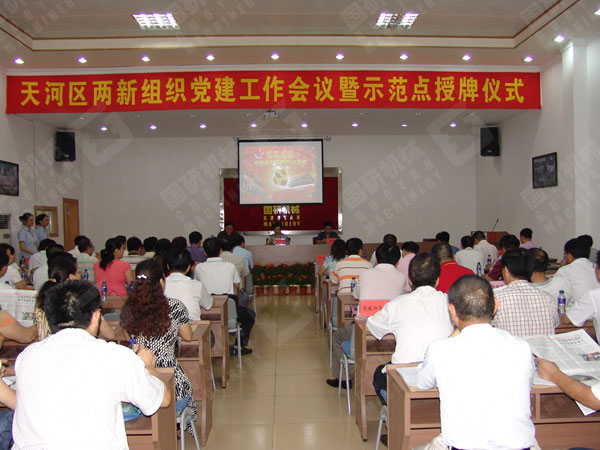 7月2日下午,天河区“两新组织”党建工作现场会暨党建工作示范点授牌仪式在广州市milan体育设备制造有限公司隆重举行。天河区委常委、组织部部长潘文捷、广州市委组织部组织处处长邱培藩、天河区委组织部副部长陈璋、公司董事长兼总经理王声位、珠吉街党工委书记杜党勇、办事处主任周国栋等出席了会议。